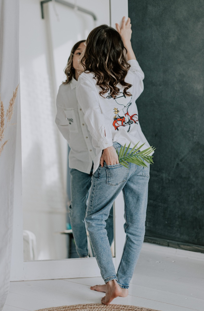 여유 있는 핏의 옷을 입으면 세련된 느낌이 나요.